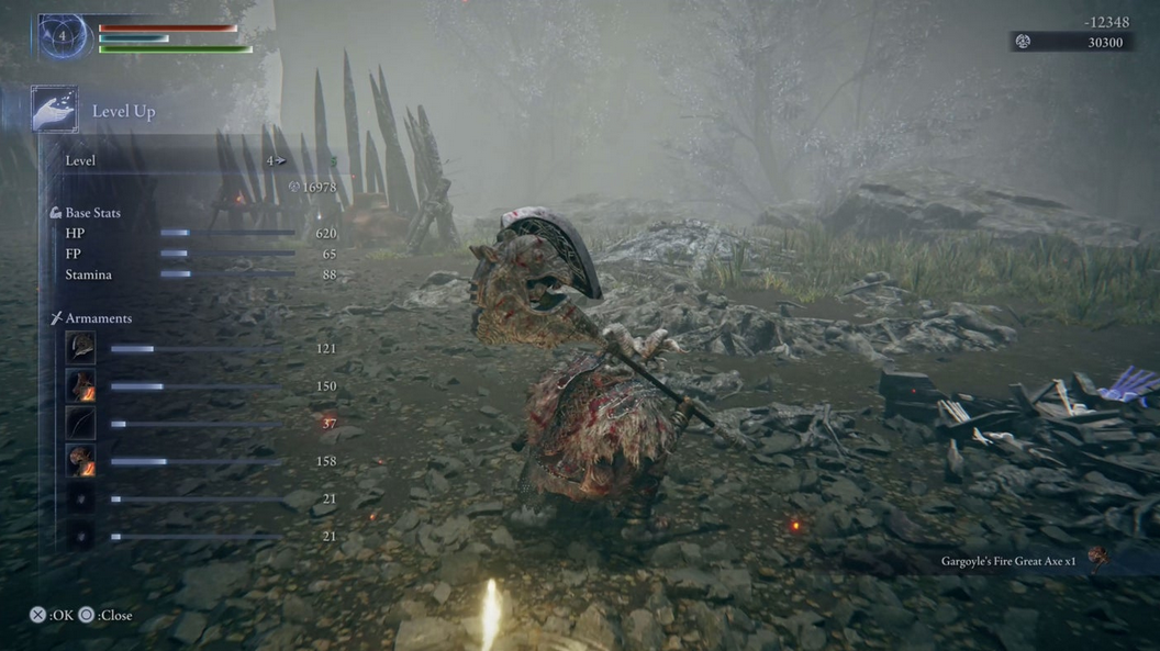 نظام التطوير في اللعبة أبسط بكثير. عند جمع الرونز من الأعداء والوصول إلى موقع Grace، يمكنك التطور بسرعة من المستوى الأول إلى الثاني، بينما تتطور الإحصائيات الأخرى تلقائيًا، مما يسرع من وتيرة اللعب. توجد مناطق متنوعة لاستكشافها، وقتل الأعداء فيها، وجمع الأسلحة. عند هزيمة الزعماء الجانبيين، تظهر بلورة تمنحك خيارًا من بين ثلاث جوائز عشوائية: أسلحة قوية، أو إحصائيات سلبية، أو أدوات قوية.