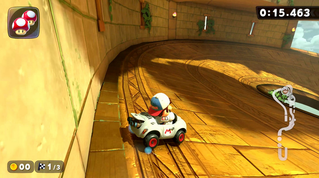 على الصعيد التقني، تستعرض Mario Kart World قدرات سويتش 2 بزيادة عدد المتسابقين، وحجم المضامير، وتفاصيل الأنميشن، وعالم اللعبة التفاعلي. تعمل اللعبة بسلاسة فائقة بمعدل 60 إطارًا في الثانية ودقة 4K في وضع الجهاز المنزلي. على الرغم من بعض الضبابية في الأفق، فإن تصاميم المضامير متنوعة ومذهلة، وتوفر تجربة جيل جديد بتفاصيلها المبتكرة.