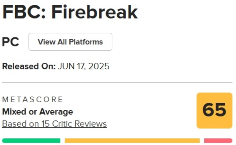 لعبة FBC: Firebreak حصلت على تقييمات متوسطة على موقع ميتاكريتك.